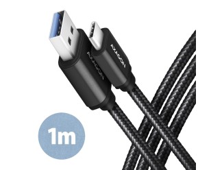 Data and charging USB 3.2 Gen 1 cable lengh 1 m. 3A. Black braided.