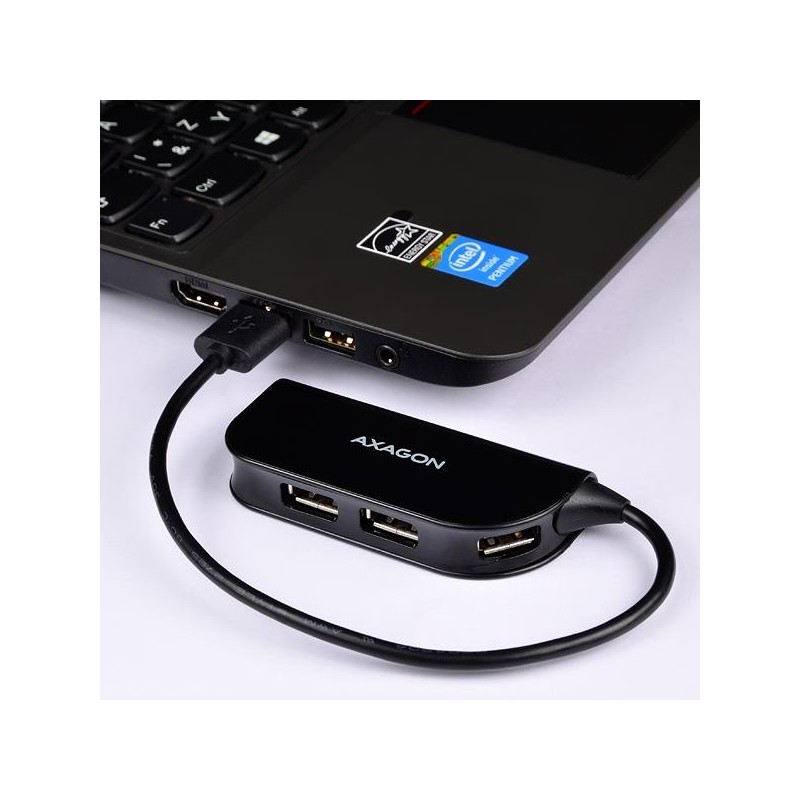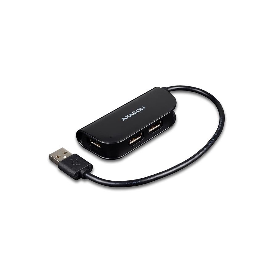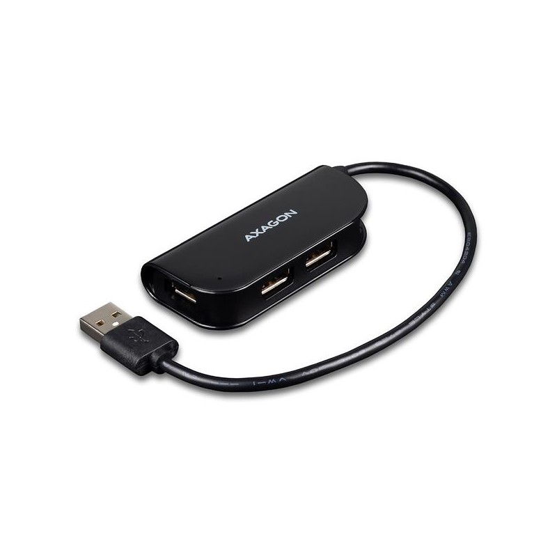 Four-port AXAGON HUE-X4B USB 2.0 READY hub with permanently attached USB cable.