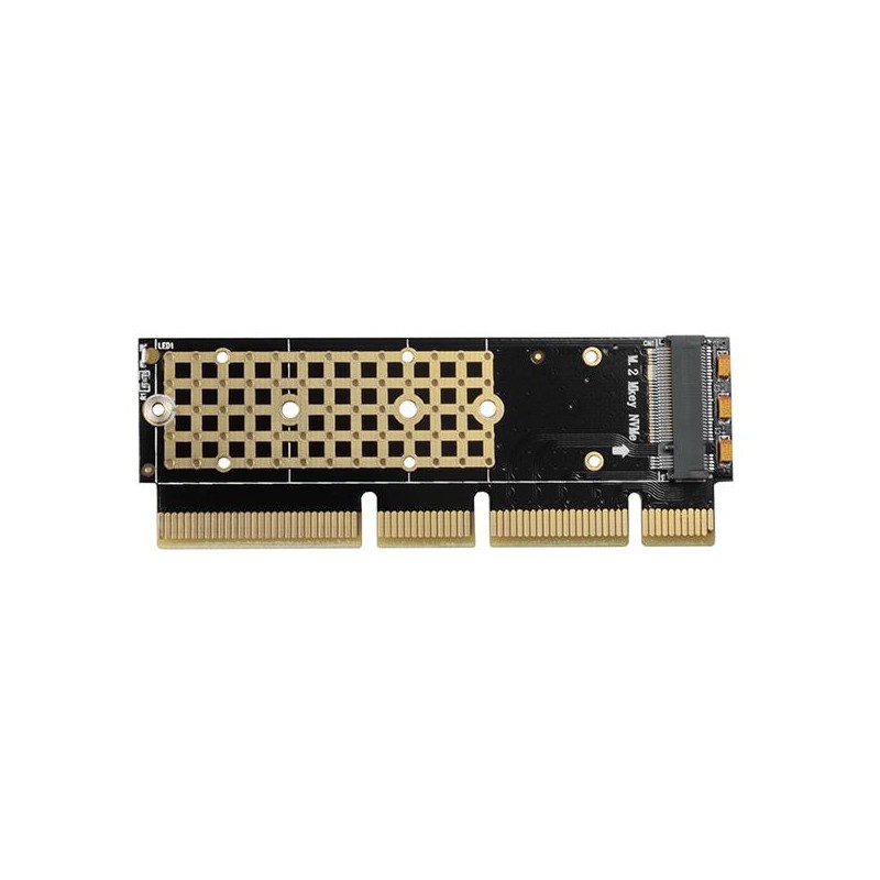 The ultra compatible PCI-Express adapter for connecting an NVMe M.2 SSD disk to a computer. Suitable for x16, x8, and x4 slots.