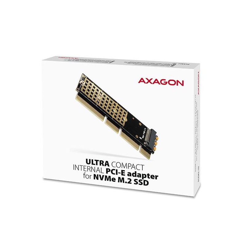 The AXAGON PCEM2-1U internal adapter allows connecting an M.2 SSD disk to a desktop computer using a PCI-Express bus.