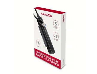 Compact AXAGON ADSA-FP2C SLIM adapter with USB-C 5Gbps and SATA 6G interface for 2.5" SATA hard drives or SSDs. The connection to the computer enables a permanently attached USB-C cable 20 cm long. Thanks to the USB 3.2 Gen 1 interface, the transfer rate is up to 5 Gb/s, and the Plug & Play function ensures automatic connection to the computer.