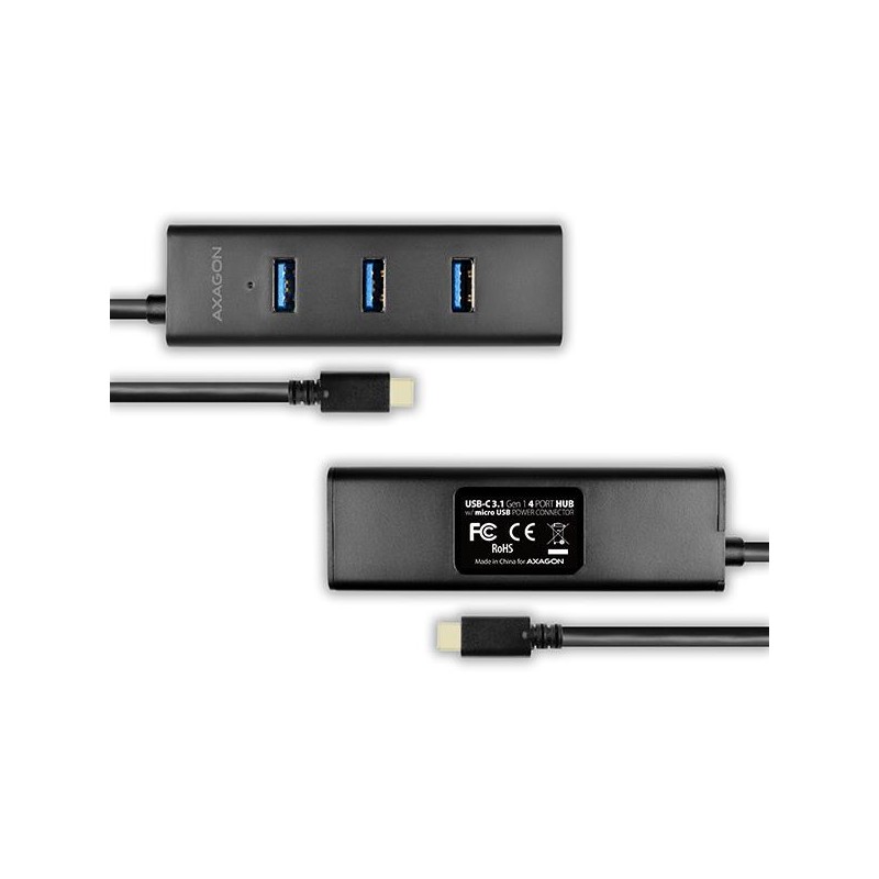 The four port AXAGON HUE-S2C USB 3.1 hub with optional external power and fast charging support on all ports.