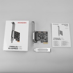 The AXAGON PCEA-P1N PCI-Express card adds one parallel port with a DB25 connector to your desktop PC.