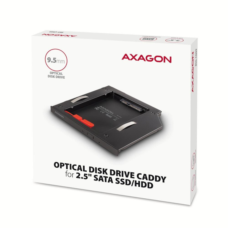 AXAGON Optical disk drive caddy for 2.5“ SSD/HDD. LED, 9.5 mm, Aluminum | RSS-CD09