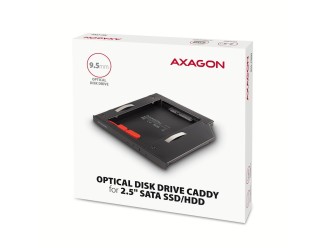 The AXAGON RSS-CD09 internal frame is designed to be mounted instead of the existing 9.5 mm CD/DVD drive. It is designed for 2.5" SSD/HDD SATA drives. You can easily replace the optical drive in your laptop with a hard drive.