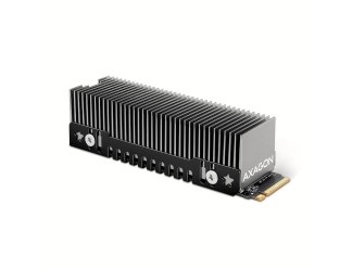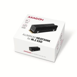 The heatsink can be used not only with M.2 AXAGON adapters, but also with M.2 (NGFF) slots on motherboards, etc. Thanks to the large cooling surface and the metal frame, the heatsink ideally dissipates heat from both sides of the M.2 disk and thus achieves maximum cooling efficiency. Due to its high cooling efficiency, this cooler is one of the most powerful cooler models of the AXAGON brand.