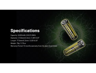 High Capacity: It boasts a substantial 6,000mAh (milliamp-hour) capacity at 3.6V (21.6Wh). This large capacity translates to significantly longer runtimes for compatible devices, particularly high-power flashlights.