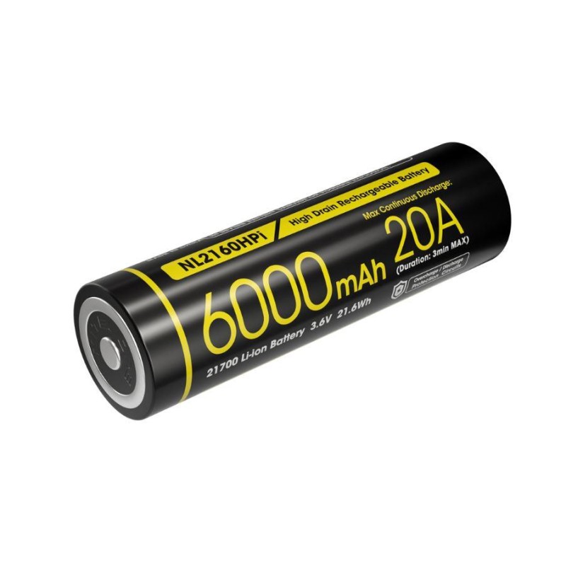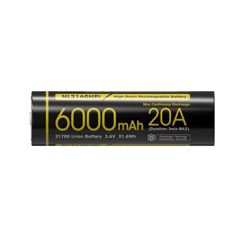 The Nitecore NL2160HPi is a high-capacity, high-discharge 21700 Li-ion rechargeable battery, specifically designed to power Nitecore's "i Series" flashlights and other high-drain devices. It's a crucial component for achieving the maximum performance (especially high lumen output) from compatible Nitecore products.