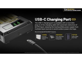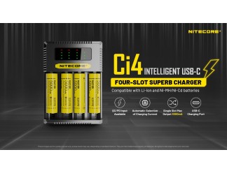 he Nitecore Ci4 is an intelligent, four-slot, USB-C battery charger designed for a wide variety of rechargeable batteries, making it a versatile tool for anyone with multiple battery-powered devices.
