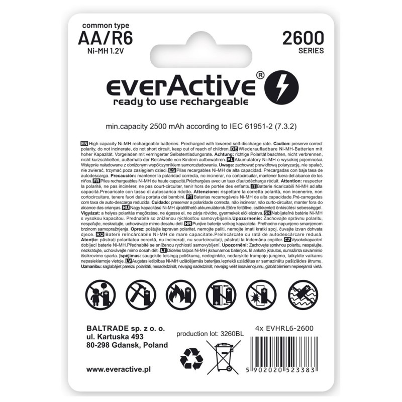 Rechargeable batteries everActive Ni-MH R6 AA 2600 mAh Professional Line
