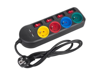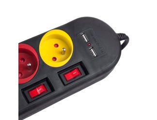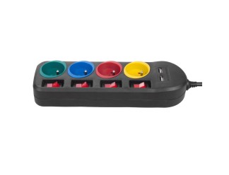 Maclean power strip, 4-socket extension cable + 2xUSB, with switches, 250VAC/10A, 2.1A 5V, 1.5m, black, MCE229 B