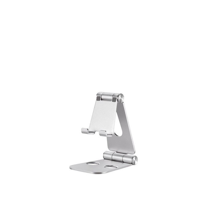 The Neomounts DS10-160SL1 is a foldable stand for smartphones up to 7". The clever tilt option (270°) allows the stand to change to the ideal viewing angle. The phone stand is ideal for hands-free video calling, watching a movie or playing a game. Thanks to the open configuration, the charging port remains accessible and charging wires can be routed to the back of the stand.The lightweight, foldable design makes the stand ideal to take with you wherever you want. The anti-skid silicon pads and safety ledge stopper ensure solid positioning of your phone. A nifty travel pouch is included with the stand.
