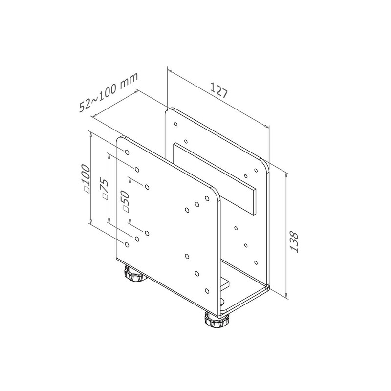 This NewStar thin client mount allows vertical installation of thin client computer between the screen and monitor mount. This product includes VESA 75 and VESA 100 hole pattern to simplify installation with flat screens and flat screen mounts. Hide your cables and keep the workplace nice and tidy.