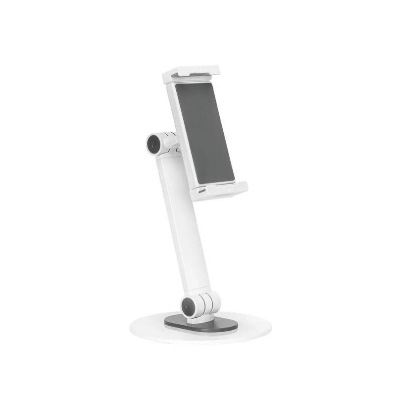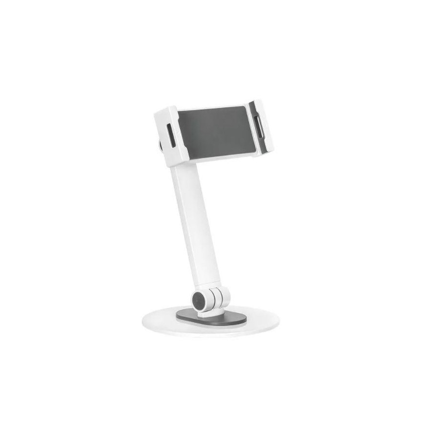 The Neomounts DS15-550WH1 is an universal tablet stand for tablets from 4,7" up to 12,9" with a weight capacity of 1 kg. The tablet stand has 3 pivoting points and is ideal for hands-free video calling, watching a movie or playing a game. The integrated ball joint allows the stand to rotate 360° so you can switch between portrait and landscape position. Additionally, the clever tilt (270°) and swivel (104°) options allow the stand to further change to the ideal viewing angle. Soft rubber pads protect your device from any scratches and the solid base with anti-skid silicon pads ensure solid positioning of your device.