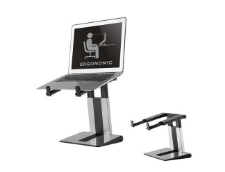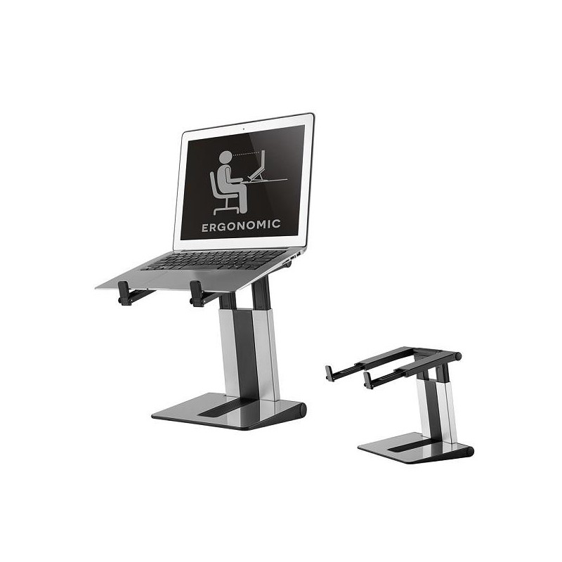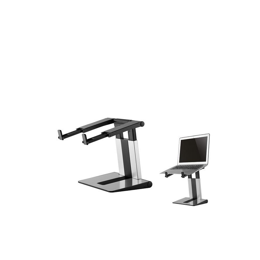 The Neomounts NSLS200 is a universal stand for laptops from 10" up to 17", with a maximum weight capacity of 5 kg. The stand has 7 different height positions, depth adjustment and a clever folding design. The lightweight, compact design makes the stand ideal to take with you wherever you want. The open configuration ensures good ventilation of the laptop and the anti-skid silicon pads and safety ledge stopper ensure solid positioning.