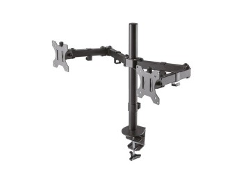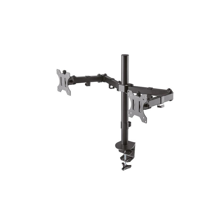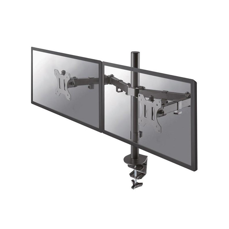 The Neomounts desk mount, model FPMA-D550DBLACK is a tilt-, swivel and rotatable desk mount for 2 flat screens up to 32". This mount is a great choice for space saving placement on desks using a desk clamp or grommet mount. Neomounts versatile tilt (90°), rotate (360°) and swivel (180°) technology allows the mount to change to any viewing angle to fully benefit from the capabilities of the flat screen. The mount is manually height adjustable from 0 to 44 centimetres. Depth adjustable from 4 to 46 centimetres. An innovative cable management conceals and routes cables from mount to flat screen. Hide your cables to keep the workplace nice and tidy. Neomounts FPMA-D550DBLACK has three pivot points and is suitable for screens up to 32". The weight capacity of this product is 8 kg each screen. The desk mount is suitable for screens that meet VESA hole pattern 75x75 or 100x100mm. Different hole patterns can be covered using Neomounts VESA adapter plates. By using an ergonomic mount neck- and back complaints can be avoided. Ideal for use in offices and on counters or in a reception area. All installation material is included with the product.