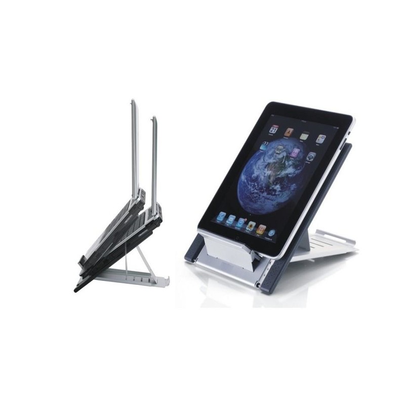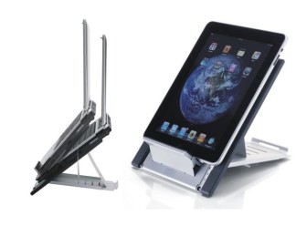 The Neomounts universal tablet and notebook stand, model NSLS100 is a universal stand for tablets and notebooks up to 22".It offers six different tilt positions for maximum viewing comfort. Easy to fold flat, lightweight and portable. Width adjustable to accommodate most size laptop computers and all tablets. The hollowed-out design avoids overheating problems for maximum tablet and notebook speed. This stand holds 5 kilo, allows up to 52° angle and offers unique depth measurements of 25cm and stretchable width from 18 to 27cm. The tablet/notebook stand is supplied with a neoprene cover ideal to use as a mouse pad. This model, NSLS100 is the ideal tool for traveling. Compact, light and easy to carry. By using an ergonomic stand neck- and back complaints can be avoided. Ideal for use in offices and on counters or in a reception area. All installation material is included with the product.