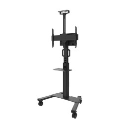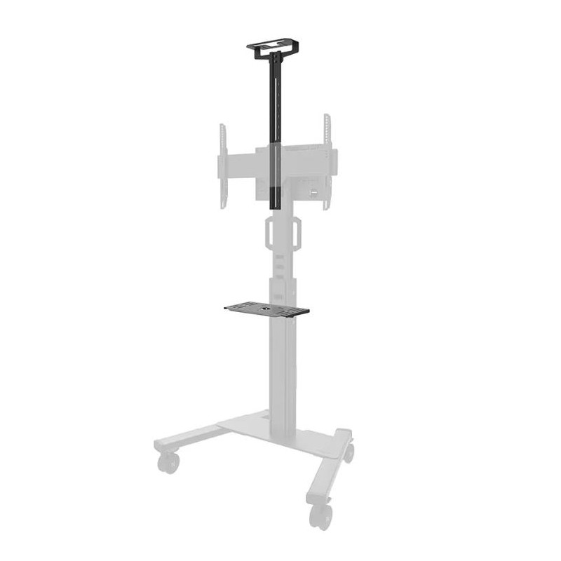 The Neomounts AV1-825BL is a videobar & multimedia kit optional for the FL50S-825BL1 mobile floor stand. The kit enables the installation of a separate cam shelf and multimedia device shelf to the trolley. The universal cam shelf can be installed both above and below the screen and is adjustable in height and depth, to fit the screen. Additionally, the cam shelf can be mounted both on the front and back of the mount. Included to the kit is an adapter for the Bose VB1 and VB-S (also both placeable above and below the screen).