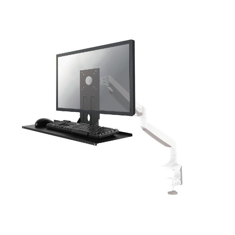The Neomounts by Newstar KEYB-V200BLACK is a universal mount for keyboards and mice. The product can be installed on an existing wall-, ceiling-, or desk mount that has a VESA hole pattern of 75x75mm or 100x100 mm. Select the wall-, ceiling or desk mount you need and combine it with the KEYB-V200BLACK keyboard and mouse holder. The mount has been arranged both for left - and right-handed users. Any keyboard and mouse can be placed on this bracket. The plate is 65 cm wide and has a depth of 21 cm. The height of the vertical strip is 33 cm. On the back of the vertical strip are holes to organize both monitor and keyboard/mouse cables in a tidy way. Maximum carrying weight is 2 kg. By using an ergonomic keyboard/mouse mount neck- and back complaints can be avoided. Ideal for use in offices and on counters or in a reception area. All installation material is included with the product.
