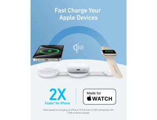 Anker MagGo Wireless Charging Station (3-in-1, Foldable Pad), White