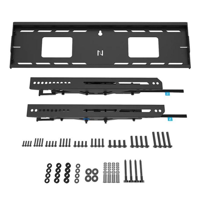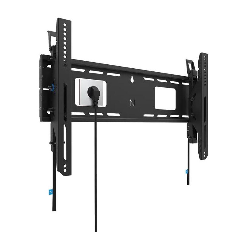 The LEVEL-750 wall mount has a profile of 9,3 cm and is suitable for screens that meet VESA hole pattern 100x100 to 600x400 mm. Its quickly connectable wall plate allows for multiple screen mounting. Additionally, the wall plate is designed with specific cut-outs for wall sockets and securing devices and cables. It features various perforated holes for easy tie-wrap cable fixing and provides space for cable storage, ensuring a clean and tidy finishing.