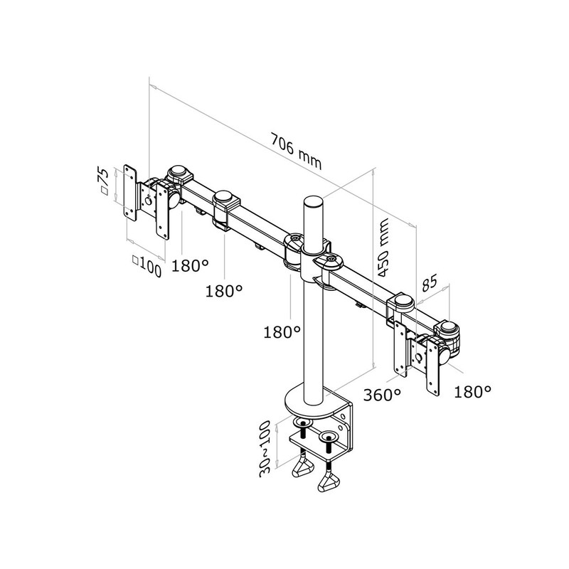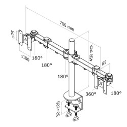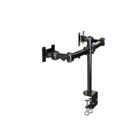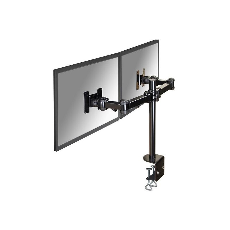 The Neomounts desk mount, model FPMA-D960D is a tilt-, swivel and rotatable desk mount for 2 flat screens up to 27". This mount is a great choice for space saving placement on desks using a desk clamp. Neomounts versatile tilt (180°), rotate (360°) and swivel (180°) technology allows the mount to change to any viewing angle to fully benefit from the capabilities of the flat screen. The mount is manually height adjustable from 0 to 45 centimetres. Depth adjustable from 10 to 43 centimetres. An innovative cable management conceals and routes cables from mount to flat screen. Hide your cables to keep the workplace nice and tidy. Neomounts FPMA-D960D has three pivot points and is suitable for screens up to 27" (69 cm). The weight capacity of this product is 8 kg each screen. The desk mount is suitable for screens that meet VESA hole pattern 75x75 or 100x100mm. Different hole patterns can be covered using Neomounts VESA adapter plates. For curved monitor screens we recommend our FPMA-D960 PLUS models; our FPMA-D960DVBLACKPLUS is suitable for screens up to 49" (124 cm). The weight capacity of this product is 32 kg. This monitor arm is therefore extremely suitable for widescreens and curved screens. By using an ergonomic mount neck- and back complaints can be avoided. Ideal for use in offices and on counters or in a reception area. All installation material is included with the product.