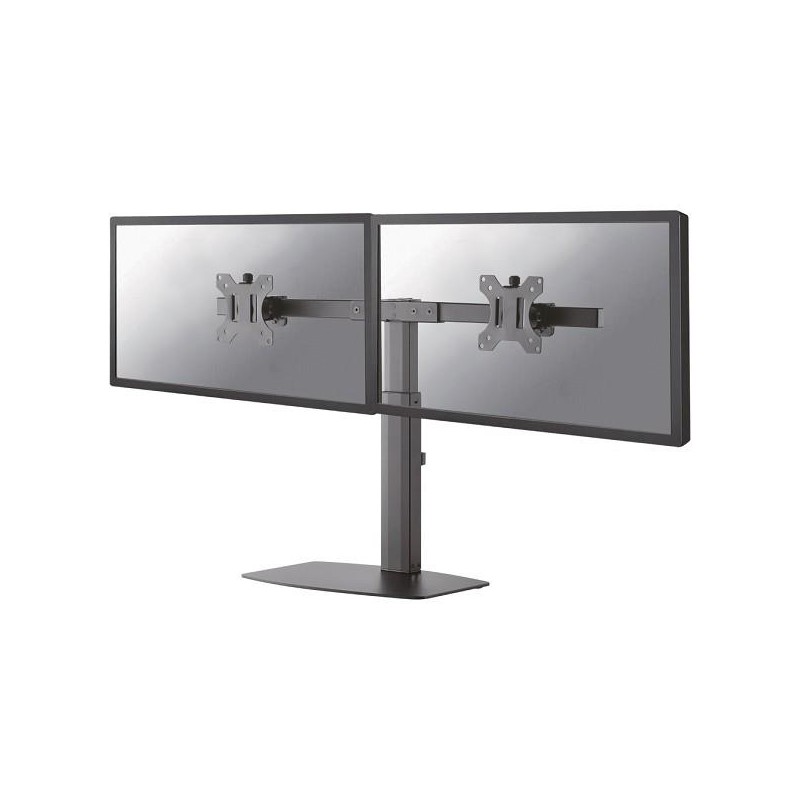 The Neomounts by Newstar desk mount, model FPMA-D865DBLACK is a tilt-, swivel and rotatable desk mount for two flat screens up to 27?. This mount is a great choice for space saving placement on desks using a desk stand. Neomounts by Newstar's versatile tilt (40°), rotate (360°) and swivel (20°) technology allows the mount to change to any viewing angle to fully benefit from the capabilities of the flat screen. The mount is manually height adjustable from 35 to 46 centimetres. Depth 5 centimetres. Neomounts by Newstar FPMA-D865DBLACK has one pivot point and is suitable for screens up to 27" (69 cm). The weight capacity of this product is 6 kg each screen. The desk mount is suitable for screens that meet VESA hole pattern 75x75 or 100x100mm. Different hole patterns can be covered using Neomounts by Newstar VESA adapter plates. By using an ergonomic mount neck- and back complaints can be avoided. Ideal for use in offices and on counters or in a reception area. All installation material is included with the product.