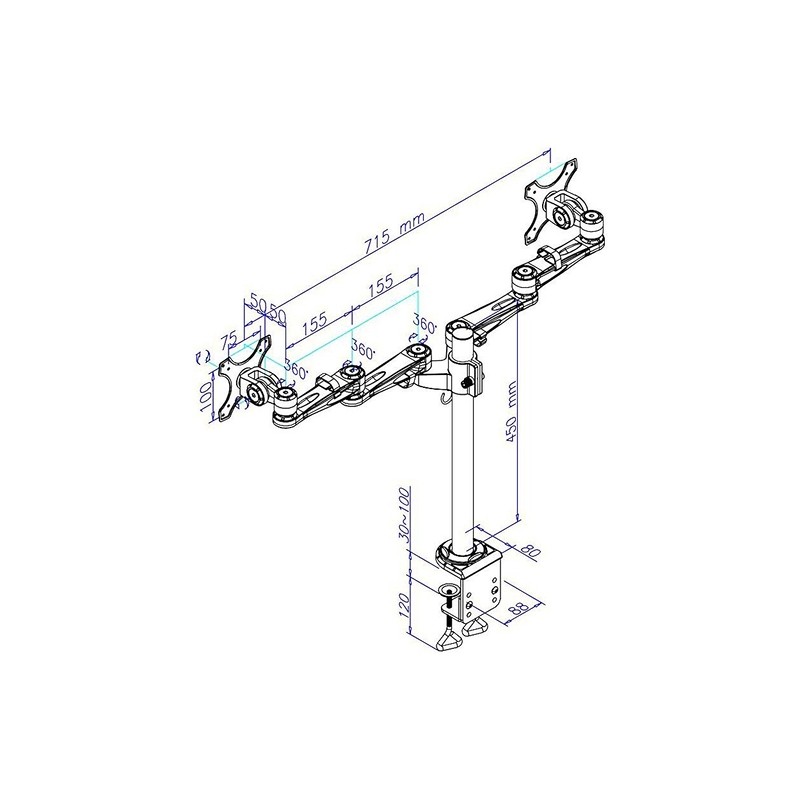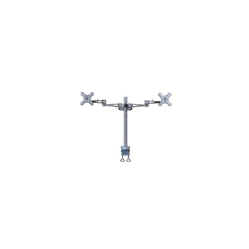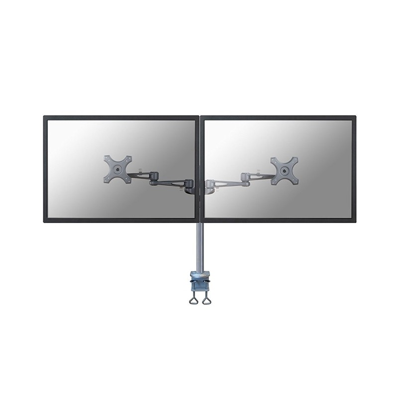 The NewStar desk mount, model FPMA-D935D is a tilt-, swivel and rotatable desk mount for 2 flat screens up to 26”. This mount is a great choice for space saving placement on desks using a desk clamp.