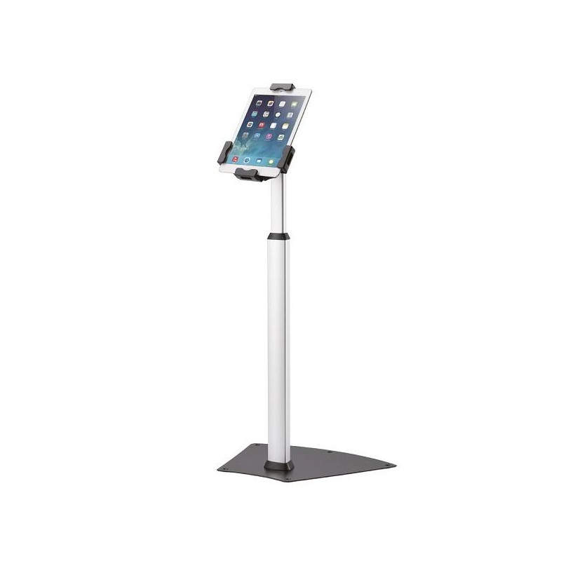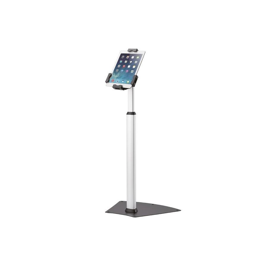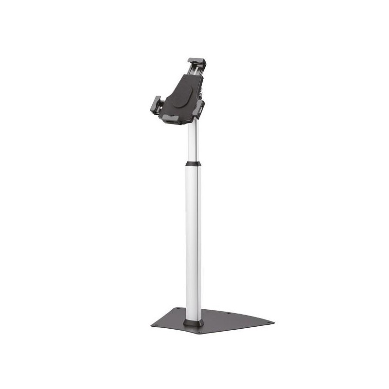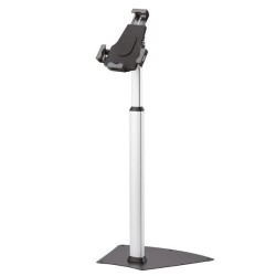 The Neomounts floor stand, model TABLET-S200SILVER, lockable tablet floor stand with lock, is designed for securely displaying in the public. Width adjustable panel allows to install most 7.9"-10.5" tablets. Invisible cable management inside the tube can make the wire organized better. This mobile stand is a great choice for space saving placement or when wall-, ceiling mounting or desk placement is not an option. This stand stretches your investment by serving a variety of projection needs by sharing a tablet over multiple rooms, sales floors or trade shows. Get optimal positioning for both standing and seated audiences, in any application, in any part of your location. Neomounts TABLET-S200SILVER is lockable, height adjustable from 63 - 108 cm and suitable for most tablets. Also this product can be used both vertical as horizontal. The stand has mounting holes to secure the stand to the floor using screws. The weight capacity of this product is 1 kg. All installation material is included with the product.