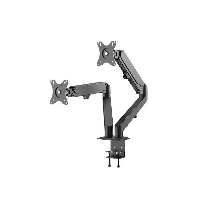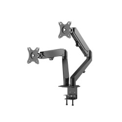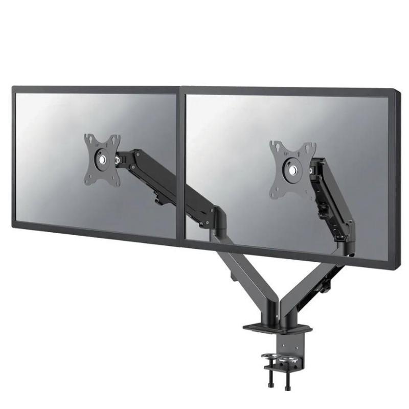 The Neomounts DS70-700BL2 is a full motion desk mount for two flat screens up to 27" with a maximum weight capacity of 7 kg per screen. The versatile tilt (135°), rotate (360°) and swivel (180°) technology allows the mount to change to any viewing angle to fully benefit from the capabilities of your screens. Additionally, the mount features gas spring height adjustment (15,2-40,2 cm) and depth adjustment (0-48 cm), to create the perfect working position. The DS70-700BL2 is suitable for screens that meet VESA hole pattern 75x75 or 100x100mm. Unused hole patterns can be covered using one of Neomounts VESA adapter plates.