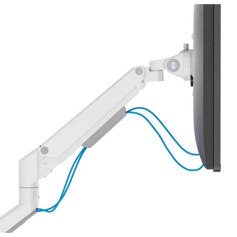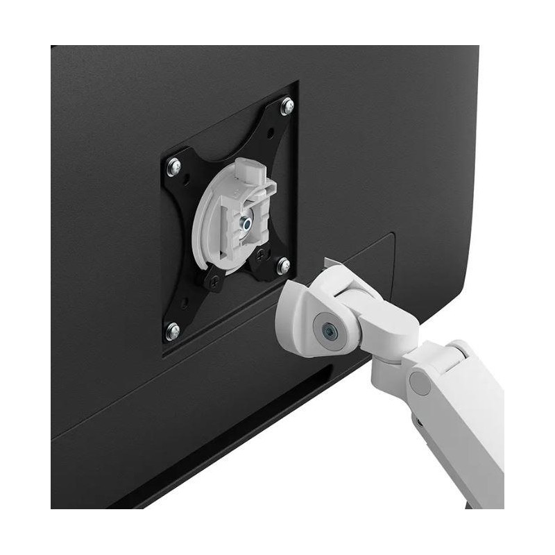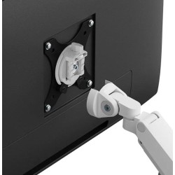 The Neomounts DS70-250WH2 NEXT Slim is a full motion desk mount designed for two screens up to 32", boasting a maximum weight capacity of 9 kg per screen. The versatile tilt (90°), rotate (360°) and swivel (180°) technology enables seamless adjustment to any desired viewing angle to fully optimize the screen's capabilities. With the gas spring height adjustment (21,5-49,5 cm) and depth adjustment (7-52,5 cm) you can effortlessly adjust the mount to suit your ergonomic needs. The DS70-250WH2 monitor arm features a nifty 180° stop mechanism, that prevents the mount from making contact with wall or separation panel when installed near it, while the integrated cable management system maintains a clutter-free desk. The elegant black VESA plates of the NEXT Slim provide a perfect match with your screen, accommodating standard 75x75 or 100x100 mm VESA patterns. For non-standard hole patterns, Neomounts has various VESA optional adapter plates available. The Quick-release VESA system enables easy setup, while the topfix clamp or grommet ensures a quick and straightforward installation. Committed to sustainability, the packaging of NEXT Slim desk mounts is 100% plastic-free and entirely made from recyclable cardboard and paper.