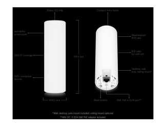 Type Wireless Access Point | Wireless Frequency Range 2.4/5 GHz | Power supply requirements UniFi PoE switch 48V, 0.32A PoE adapter (included) | Colour White | Dimensions 48.5 x 159.5 mm