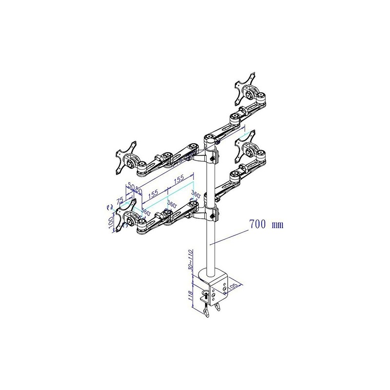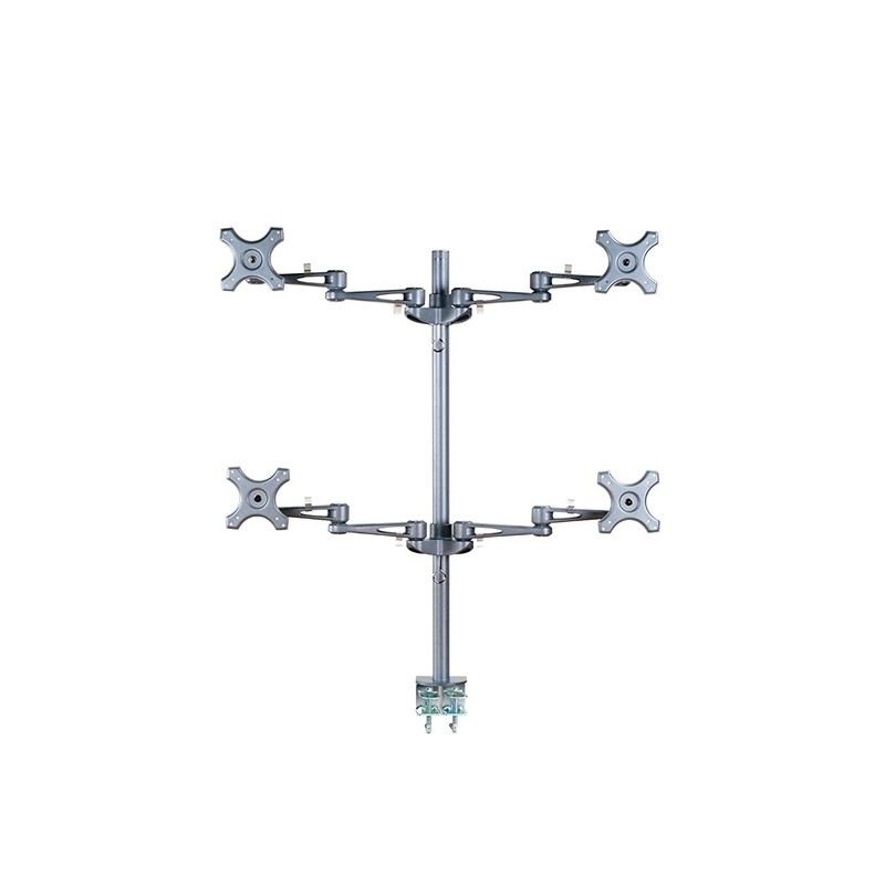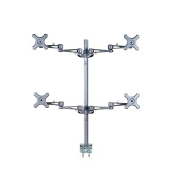 The NewStar desk mount, model FPMA-D935D4 is a tilt-, swivel and rotatable desk mount for 4 flat screens up to 26”. This mount is a great choice for space saving placement on desks using a desk clamp.