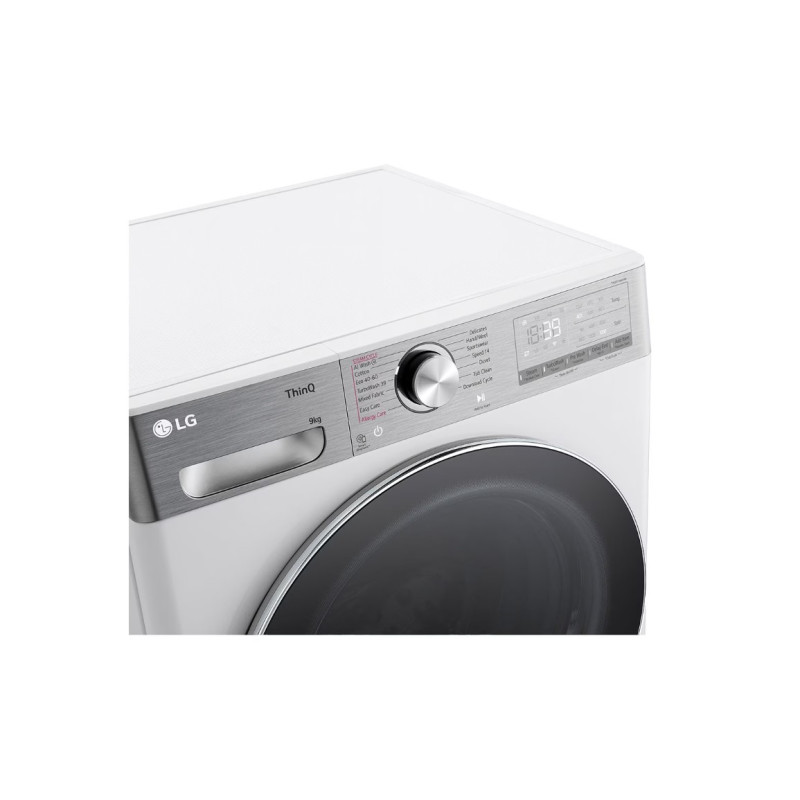 LG | Washing Machine | F2WR909P3W | Energy efficiency class A | Front loading | Washing capacity 9 kg | 1200 RPM | Depth 47.5 cm | Width 60 cm | LED | Steam function | Direct drive | Wi-Fi | White