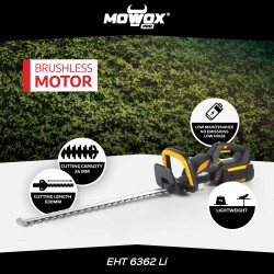MoWox | 62V Excel Series Hand Held Battery Hedge Trimmer With Rotating Handle | EHT 6362 Li | Cordless