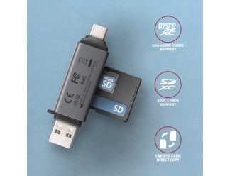 Mobile USB 3.2 Gen 1 MINI card reader with USB-C and USB-A connectors.